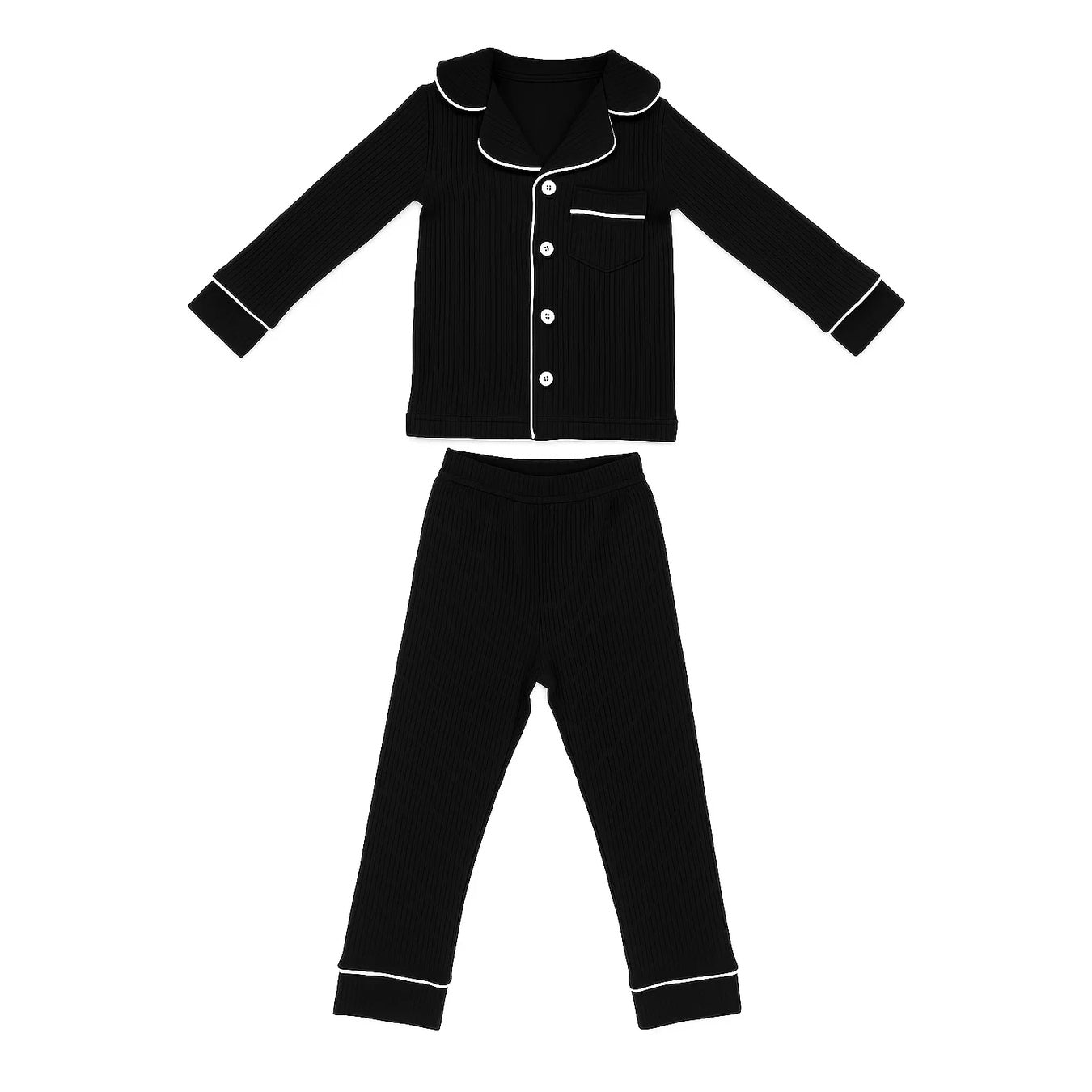 Classic ribbed pajama set with contrast piping - in Black or Navy.