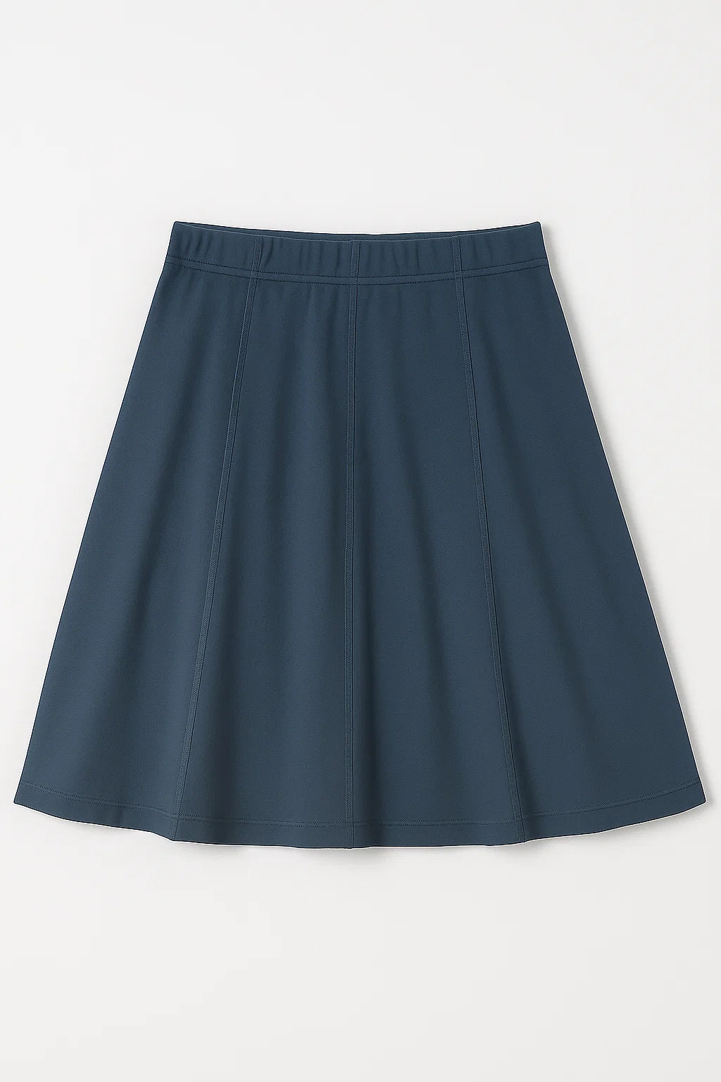 The Teen Seam Skirt features clean vertical seam lines that begin at the waistband and run down to the hem, creating a streamlined look. Its A-line cut and soft, durable fabric make it both comfortable and versatile — perfect for school, weekends, or dressier occasions.